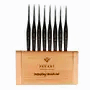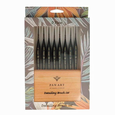 De fijne penselen in deze set van Pan Art hebben synthetisch imitatie-marterhaar en zijn geschikt voor aquarelverf en gouache-verf. Met deze penselen kun je zeer gedetailleerd schilderen. Het matzwarte handvat van FSC-gecertificeerd hout is stevig en zorgt voor urenlang comfortabel gebruik. De bus is gemaakt van mat donkergrijs messing, dat goed bestand is tegen roest en bovendien recyclebaar is. De kwast van deze penselen is zorgvuldig gevormd met grote precisie. De penselenset wordt geleverd in een mooie houten standaard met een minimalistische uitstraling, die erg handig is in gebruik.